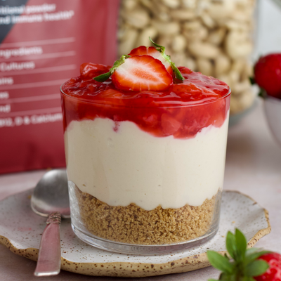 These no-bake strawberry-vanilla cheesecake pots are a deliciously creamy, plant-based treat desi...