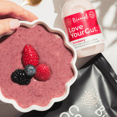 If you’re looking for an easy and delicious way to support your gut health, this high-fibre smoothie is a total game-changer. With around 20 grams of fibre per serve, it provides up to 80% of your daily fibre needs a simple yet powerful way to nourish your microbiome and fuel your body with plants. Your gut is home to trillions of microbes that influence everything from digestion and immunity to mood, energy levels and skin health. The best way to support a thriving gut microbiome is through your diet, particularly by increasing fibre intake and eating a wide range of plant-based foods. This smoothie has been designed with gut health in mind, combining a diverse mix of fruits, vegetables and plant ingredients to deliver both prebiotics and polyphenols that feed beneficial bacteria. Ingredients such as oats, flaxseed, spinach and kale provide natural prebiotics and plenty of soluble and insoluble fibre, while the berries add antioxidant-rich polyphenols to help beneficial microbes flourish. A spoonful of coconut yoghurt brings live cultures for added probiotic support, all without any dairy or added sugars. The result is a smoothie that’s as delicious as it is functional: high in fibre, packed with gut-loving ingredients and designed to help you feel your best from the inside out.