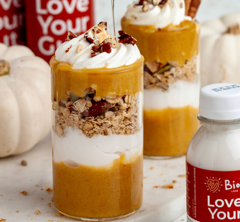 Pumpkin is a nutrient-dense food rich in beta-carotene, which the body converts to vitamin A for healthy vision and immune function. It’s also packed with fibre and antioxidants that support digestive health. Combined with the billions of live cultures in Biomel, this dessert promotes a balanced gut microbiome while keeping you satisfied and energised.